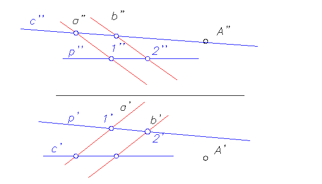 Należy narysować dwie proste: czołową c i poziomą p aby znaleźć kierunek