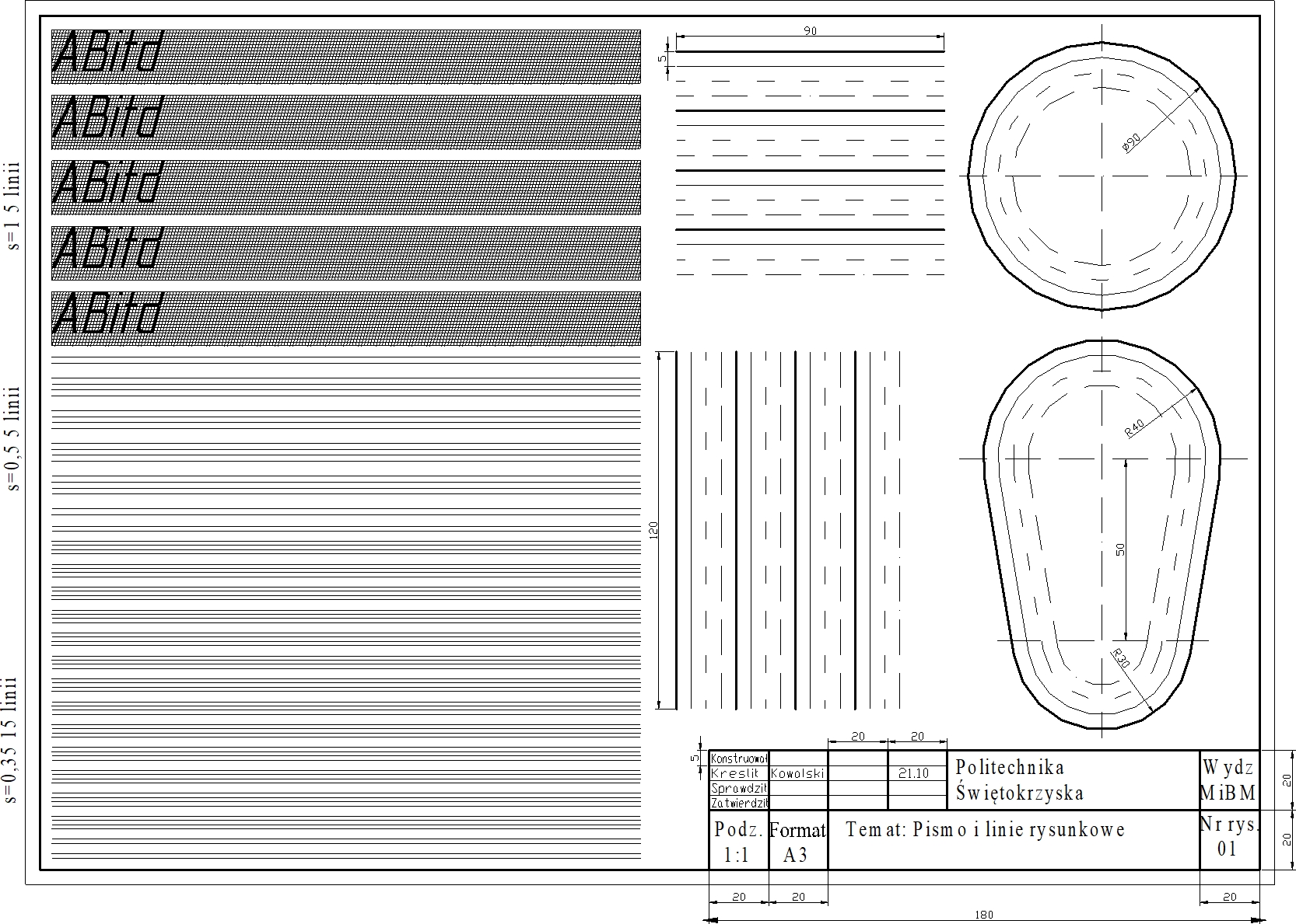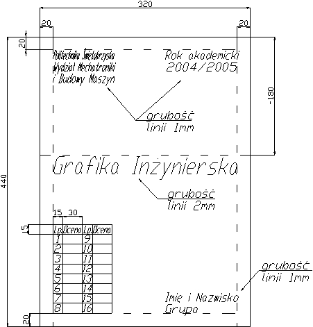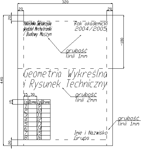 Powrót Okladka dla teczek na zajecia z Grafiki Inzynierskiej Przyklad rysunku z pismem i liniami rysunkowymi