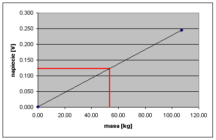 napieciem a ciezarem obciazajacym czujnik sily (formalnie rzecz biorac zaleznosc